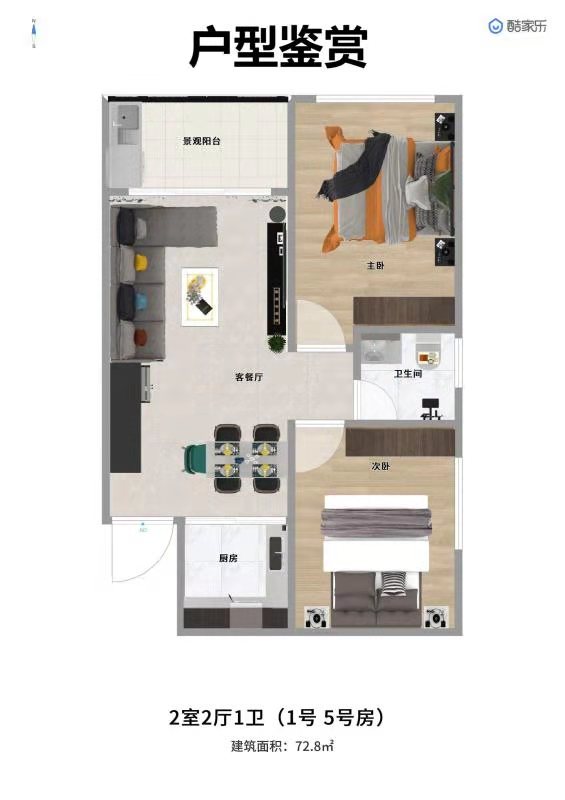 两房两厅:72.6-72.8㎡
