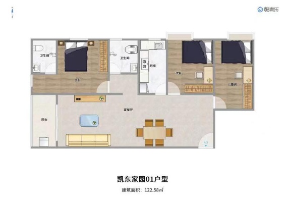 三房二厅:115.26~122.58㎡