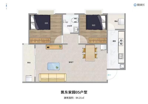 二房二厅: 84.21~88.71㎡